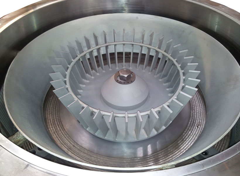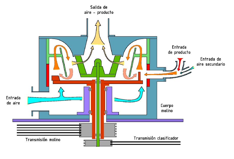 En su interior dispone de un plato triturador para micronizar las particulas y un plato clasificador con velocidad regulable que permite determinar la calidad granulometrica que desea a la salida. Esta flexibilidad y su eficiencia energetica en la reducción de particulas lo convierte en tipo de molino ideal para alcanzar granulometrias de hasta 10 µm.
